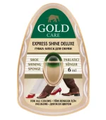 Το Gold Care Express Shine Deluxe Sponge είναι ένα πρακτικό και εύχρηστο εργαλείο για γρήγορο γυάλισμα γνήσιου και συνθετικού δέρματος. Περιέχει 6 ml γυαλιστικής σύνθεσης (wax-based formula), ιδανική για άμεσο και έντονο γυάλισμα χωρίς να απαιτεί φινίρισμα με πανί. Ενσωματώνει “reservoir mechanism” που απελευθερώνει σωστή ποσότητα της γυαλιστικής με κάθε εφαρμογή, εξασφαλίζοντας αποτελεσματική και μακρά διάρκεια χρήσης . Το σφουγγάρι είναι ανθεκτικό, σχεδιασμένο ώστε να αντέχει για πολλαπλές χρήσεις . Η φόρμουλα δημιουργεί ένα προστατευτικό, υδροαπωθητικό στρώμα στην επιφάνεια του δέρματος.