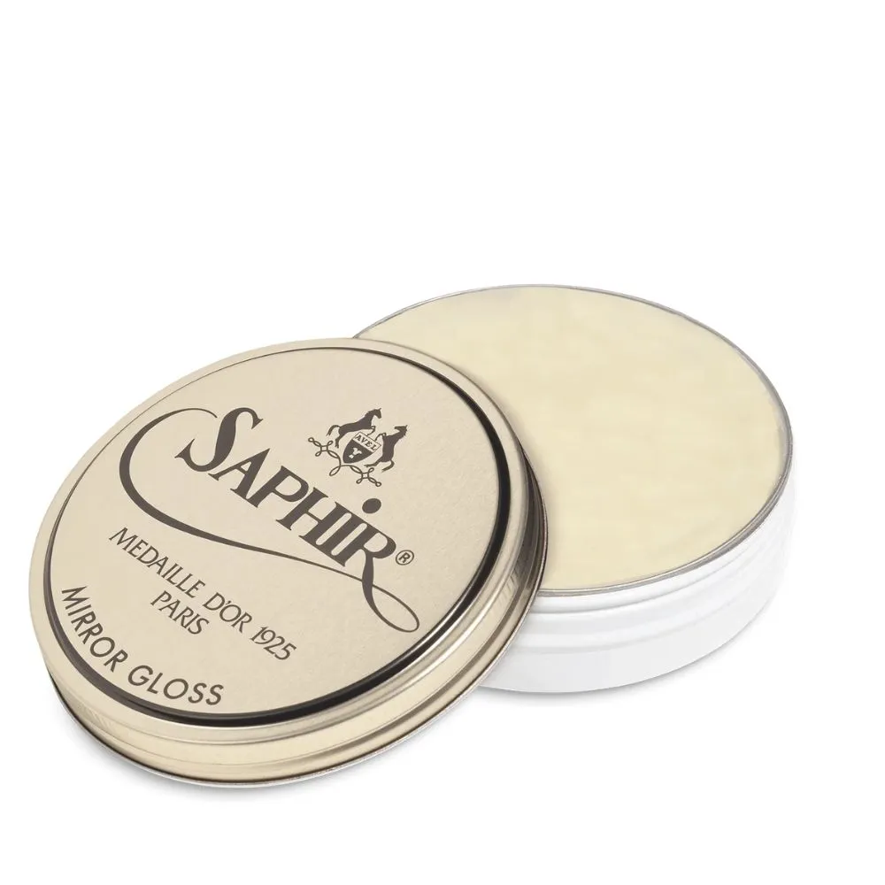 Το Mirror Gloss Saphir Medaille D’or 75ml προσδίδει στα παπούτσια φινίρισμα υψηλής στιλπνότητας. Αποτελείται από φυσικό κερί μέλισσας, καρναούμπα και κεριά μοντάνα.