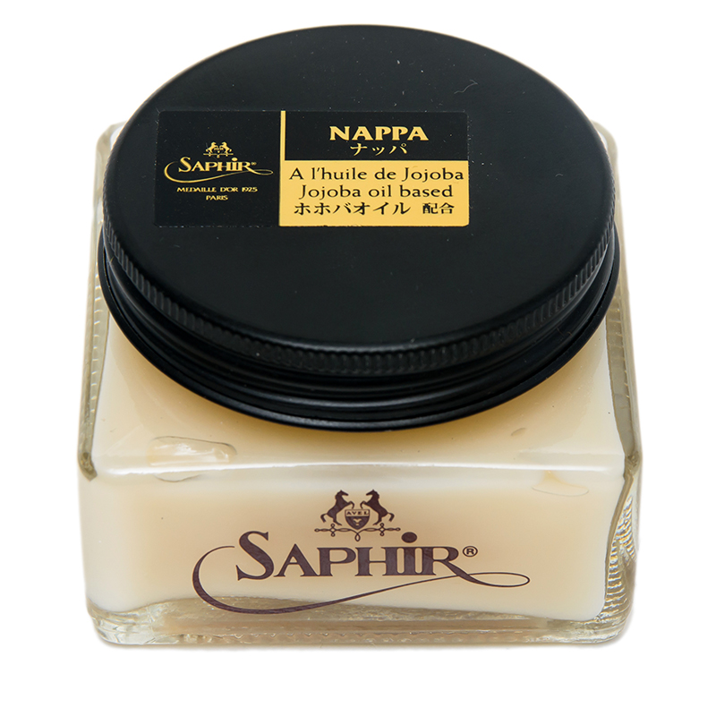 Nappa Saphir Medaille D’or 75ml. Η κρέμα δέρματος Nappa είναι μια ιδιαίτερα απαλή κρέμα που περιέχει λάδι jojoba και πρωτεΐνη σίτου, συστατικά που χρησιμοποιούνται συνήθως στη βιομηχανία καλλυντικών. Διατηρεί το φινίρισμα και την εμφάνιση του δέρματος nappa και παρέχει στο δέρμα θρέψη σε βάθος.
