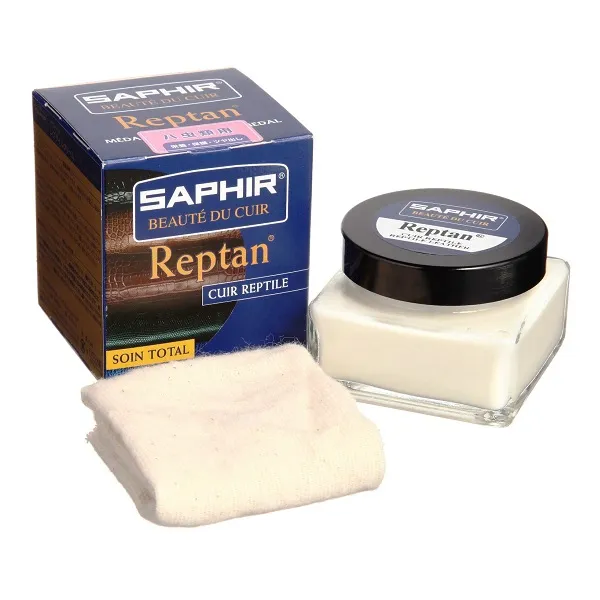 Η Saphir Reptan 50 ml αποτελεί ένα εξειδικευμένο προϊόν φροντίδας για δέρματα ερπετών (σαύρα, κροκόδειλος, φίδι, καρχαρίας και άλλα σαγρέ/εξωτικά δέρματα).