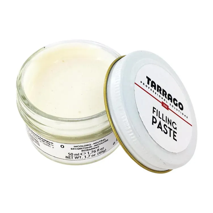 Η Tarrago Filling Paste 50ml είναι μια εξειδικευμένη πάστα επιδιόρθωσης για δερμάτινες και συνθετικές επιφάνειες. Σχεδιασμένη για να γεμίζει ρωγμές, γρατζουνιές και φθορές, προσφέρει άμεση αποκατάσταση και ομοιογένεια στο δέρμα. Αποτελεί απαραίτητο προϊόν για επισκευές σε παπούτσια, τσάντες, μπουφάν ή άλλα δερμάτινα είδη, πριν από τη βαφή ή τη φροντίδα τους.