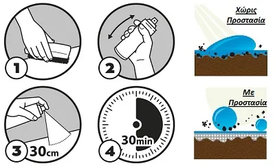 3. Ψεκάστε ομοιόμορφα στην επιφάνεια για επεξεργασία από απόσταση 30 cm περίπου.
