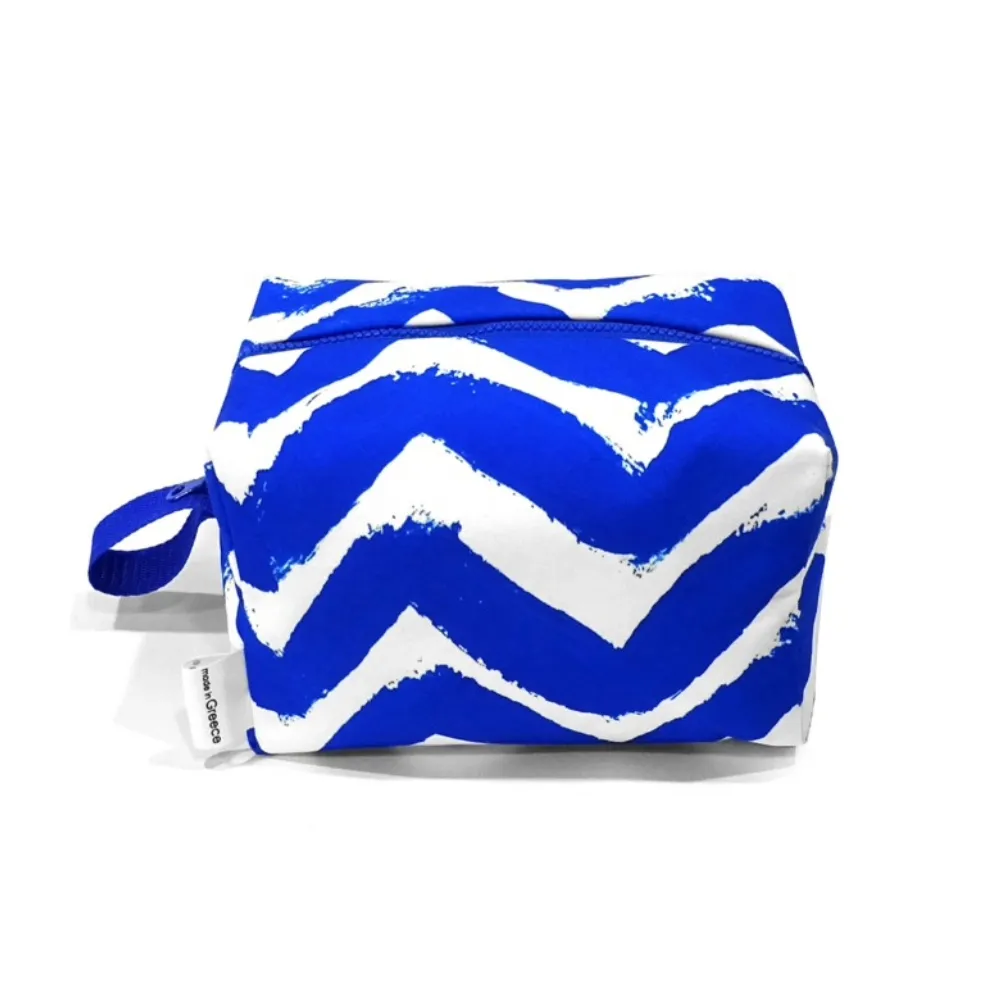 Χειροποίητη τσάντα σε σχήμα κύβου με αφηρημένες ελληνικές εκτυπώσεις. Ένα μοναδικό κομμάτι που συνδυάζει τέχνη, παράδοση και μοντέρνο design.